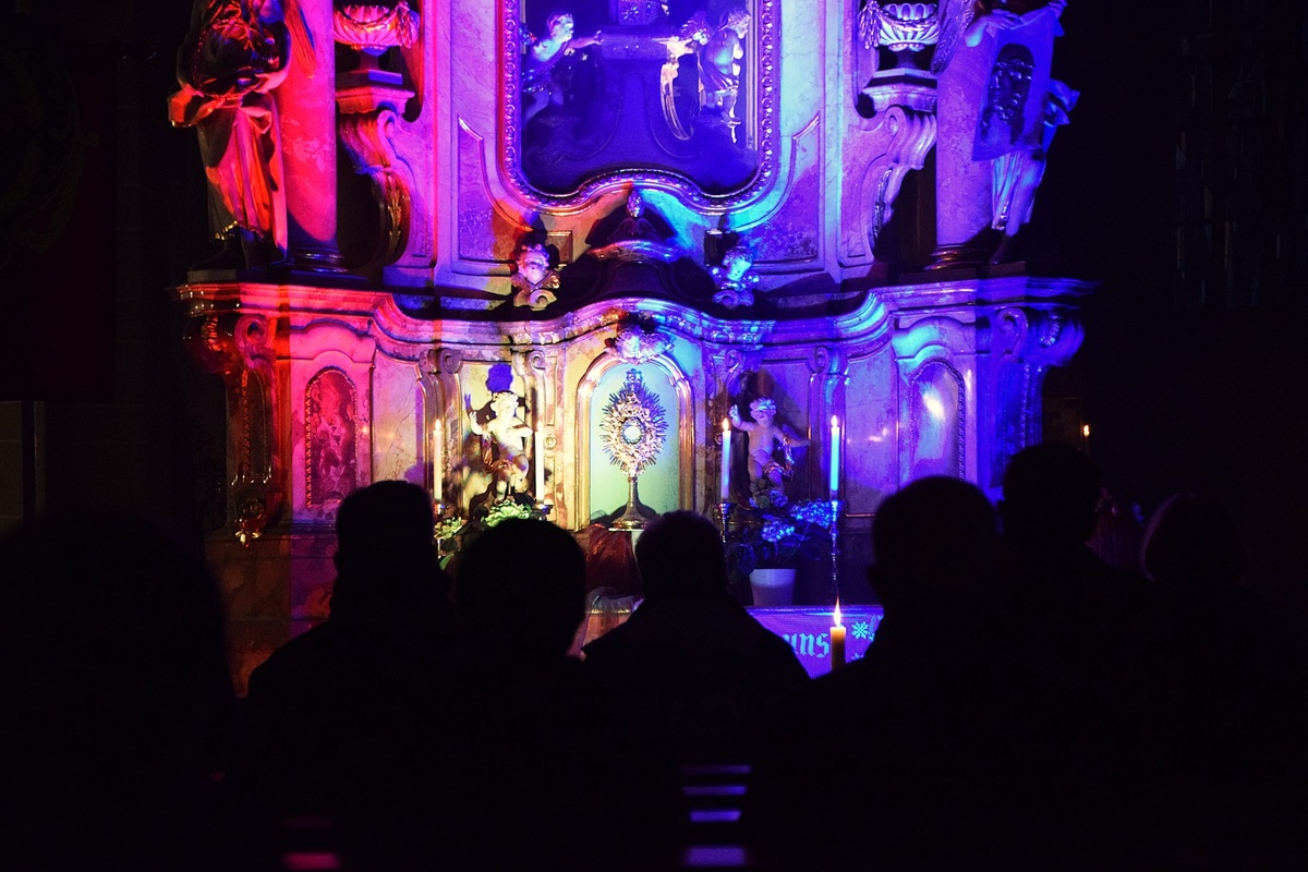 In der sogenannten eucharistischen Anbetung (in Lobpreis, Gebet oder Stille) können wir direkt zu Gott sprechen, unsere persönlichen Anliegen vor ihn bringen oder in der Stille auf seine Stimme hören. Das Gute ist, wir müssen bei dieser Art von Gebet nichts leisten, das Schwierige ist den Fokus auf das Gespräch mit Gott zu behalten, vor allem dann, wenn der Kopf voll mit anderen Dingen ist.