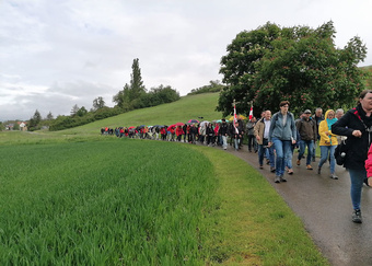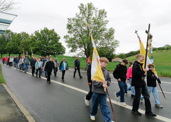Am Sonntag, 5. Mai, machten sich früh am Morgen aus den verschiedenen Himmelsrichtungen zahlreiche Gläubige zu Fuß auf den Weg zur Wallfahrtskirche Maria im Sand in Dettelbach.