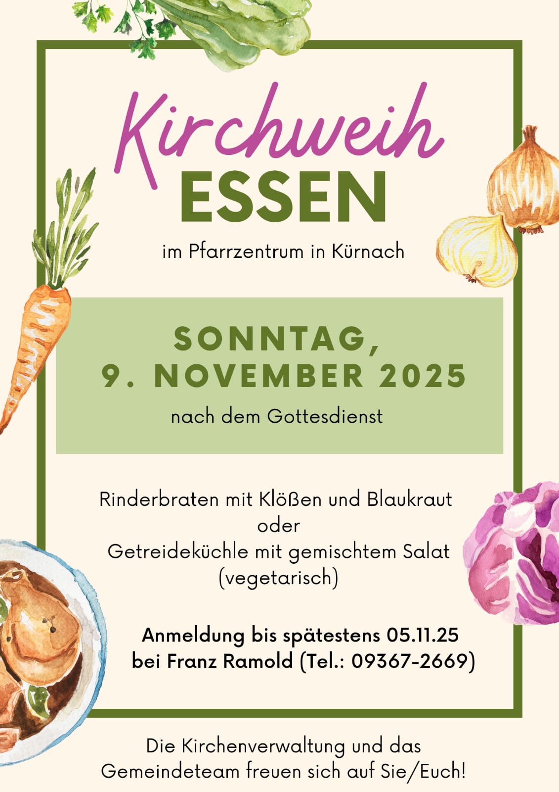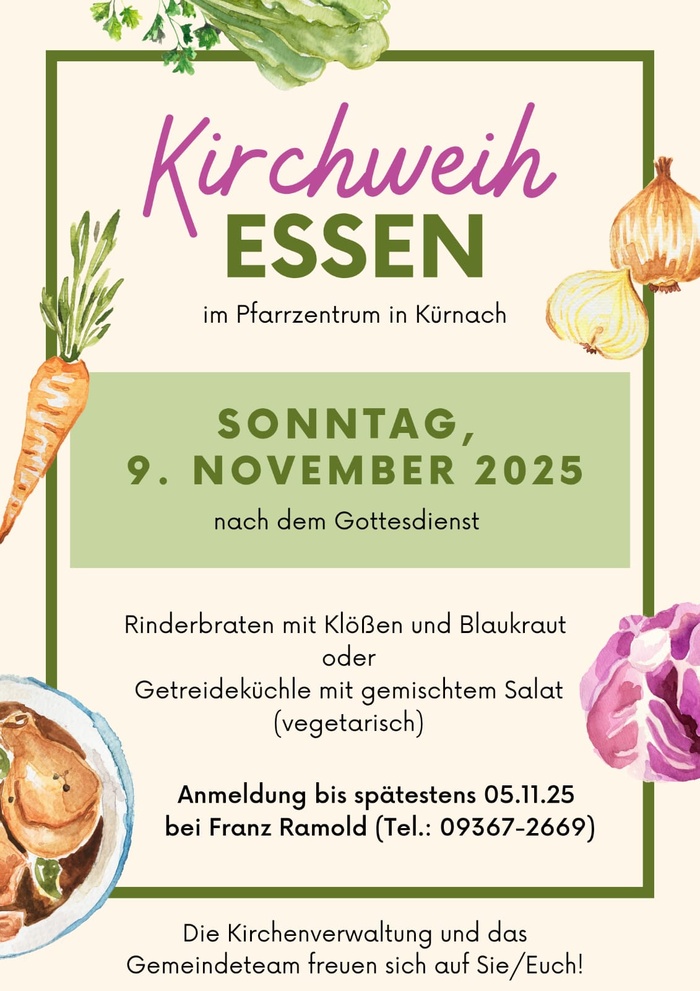 Nach dem Gottesdienst findet das Traditionelle Kirchweihessen statt.